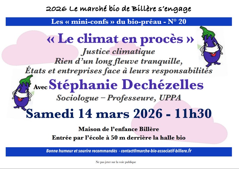Archive des événements du Marché Bio Associatif de Billère. Samedi 7 février 2026 : • Réunion du Conseil d'Administration à 14h15 à la Villa des Violettes, place Gisèle Halimi face à la Halle Samedi…